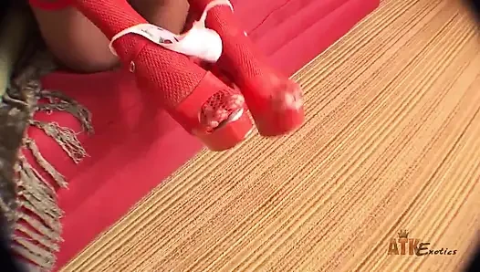 Topuklu seksi orta yaşlı seksi kadın bana zevk veriyor