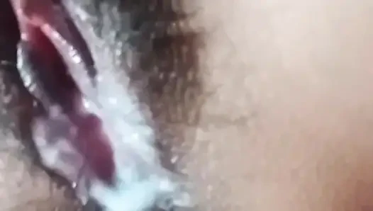 Çok ıslak ve nemli bir kedi, genç bir kız büyük kıllı amını mastürbasyon yapmak için oturdu ve fışkıran bir orgazm yaşadı.